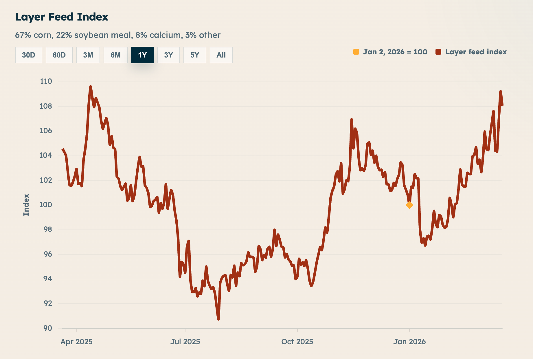 Input costs of layer feed from our monthly Egg Industry Executive Chartbook