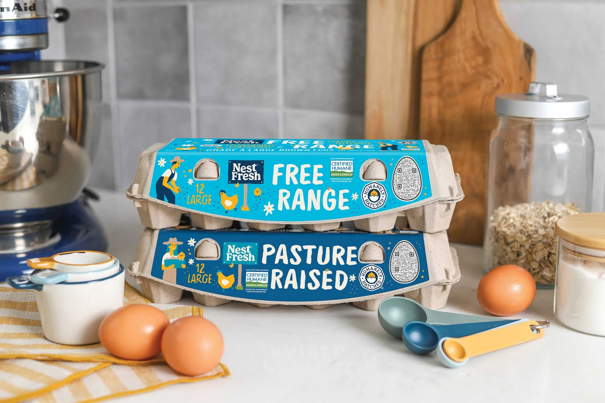 NestFresh’s refreshed cartons with the Humanely Hatched logo. Source: NestFresh
